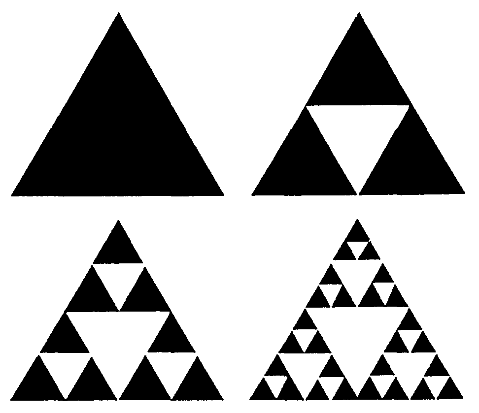 I will now scan the strainer of Sierpinsky for you and will try to explain why its dimension is log 3 / log 2 = 1.584962500721156....