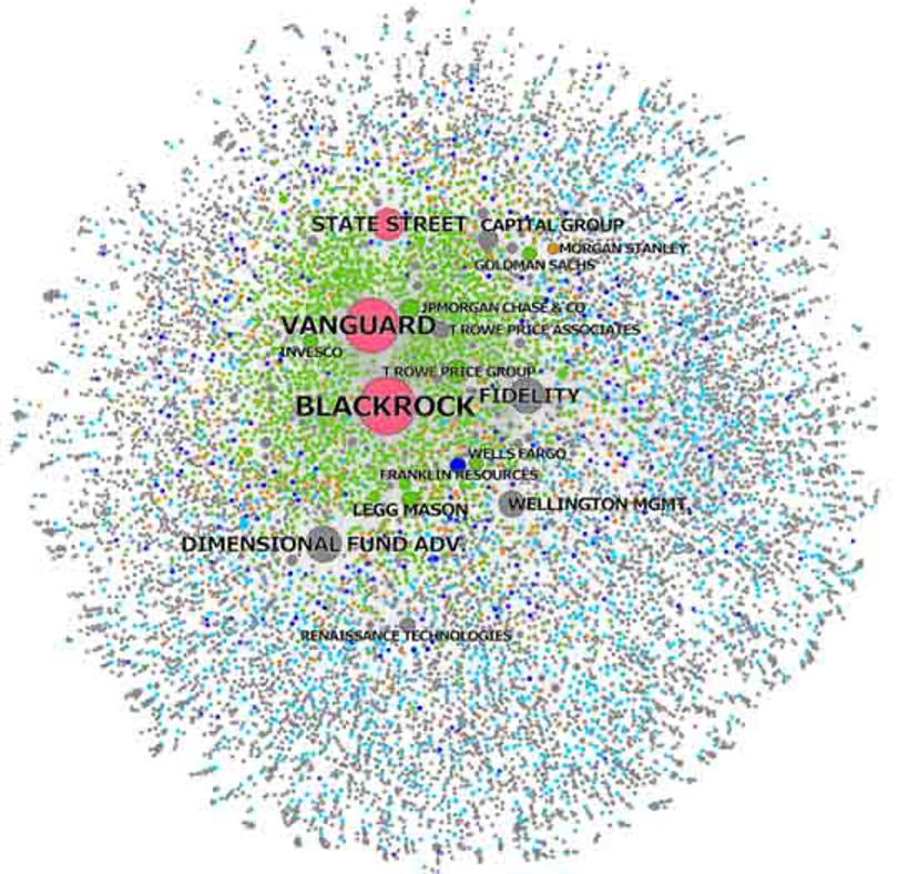 Insgesamt besitzen BlackRock und Vanguard etwa 1.600 amerikanische Unternehmen, die 2015 einen Gesamtumsatz von 9,1 Billionen US-Dollar erzielten. Wenn man den drittgrößten globalen Eigentümer, State Street, hinzurechnet, umfasst ihr gemeinsamer Besitz fast 90 % aller S&P 500-Unternehmen.